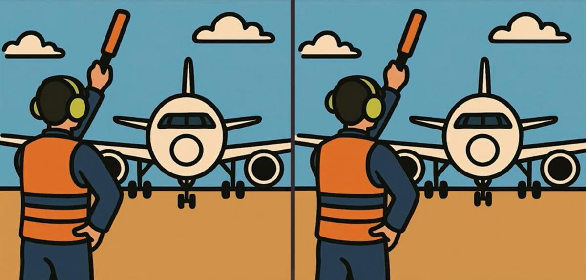 Så, är du redo för nästa utmaning? Ta en närmare titt på de två bilderna av en flygledare som styr ett flygplan. De ser kanske likadana ut vid första anblicken, men det finns 3 små skillnader. Tror du att du kan hitta dem alla på 45 sekunder? Prova och testa din synskärpa!