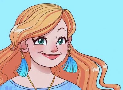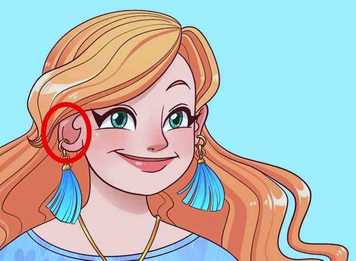 Felet i teckningen är att flickans vänstra öra är upp och ner.